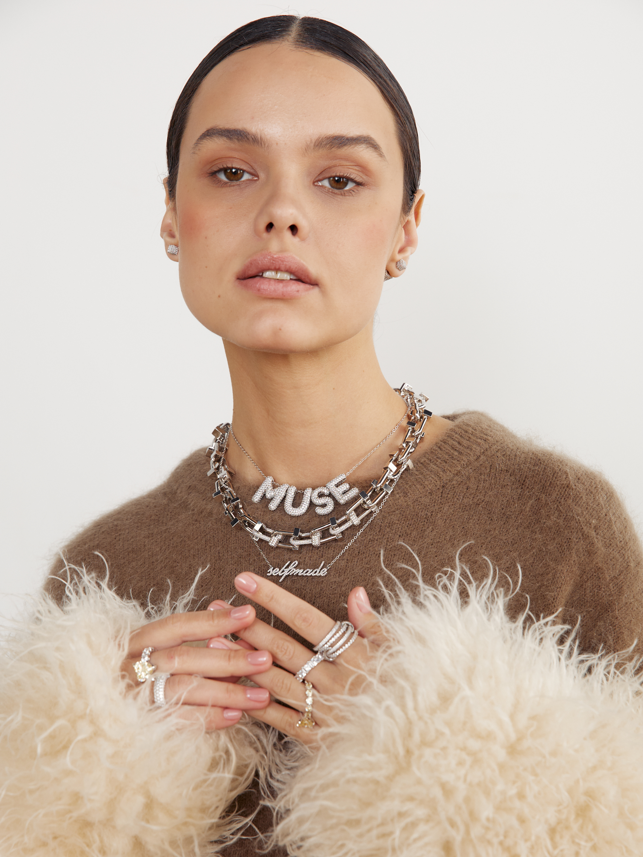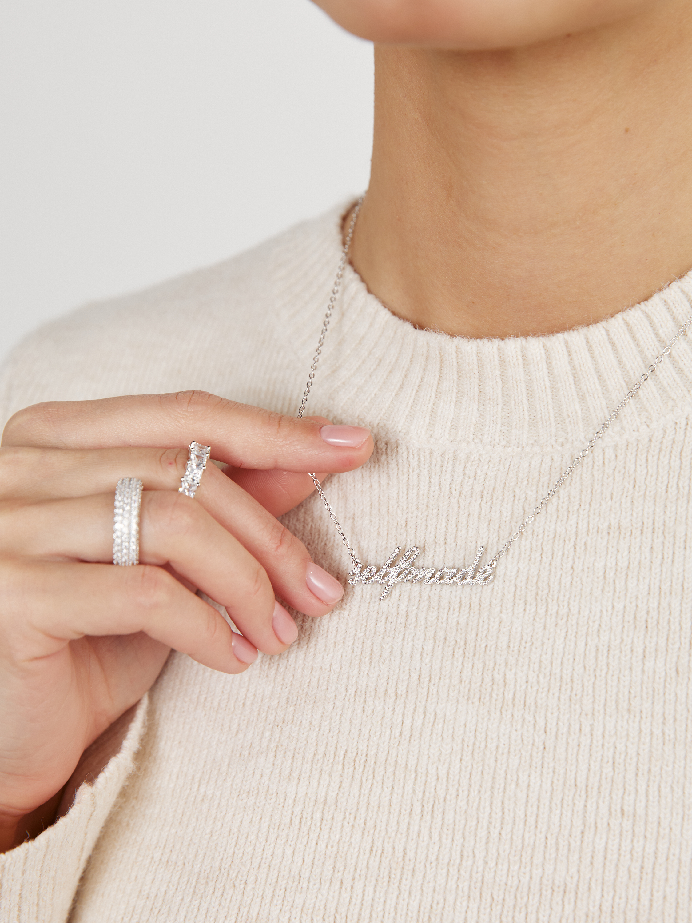Украшения коллекции MAKE A WISH выполнены из латуни, покрыты родием и позолотой, со вставками из кубических циркониев.