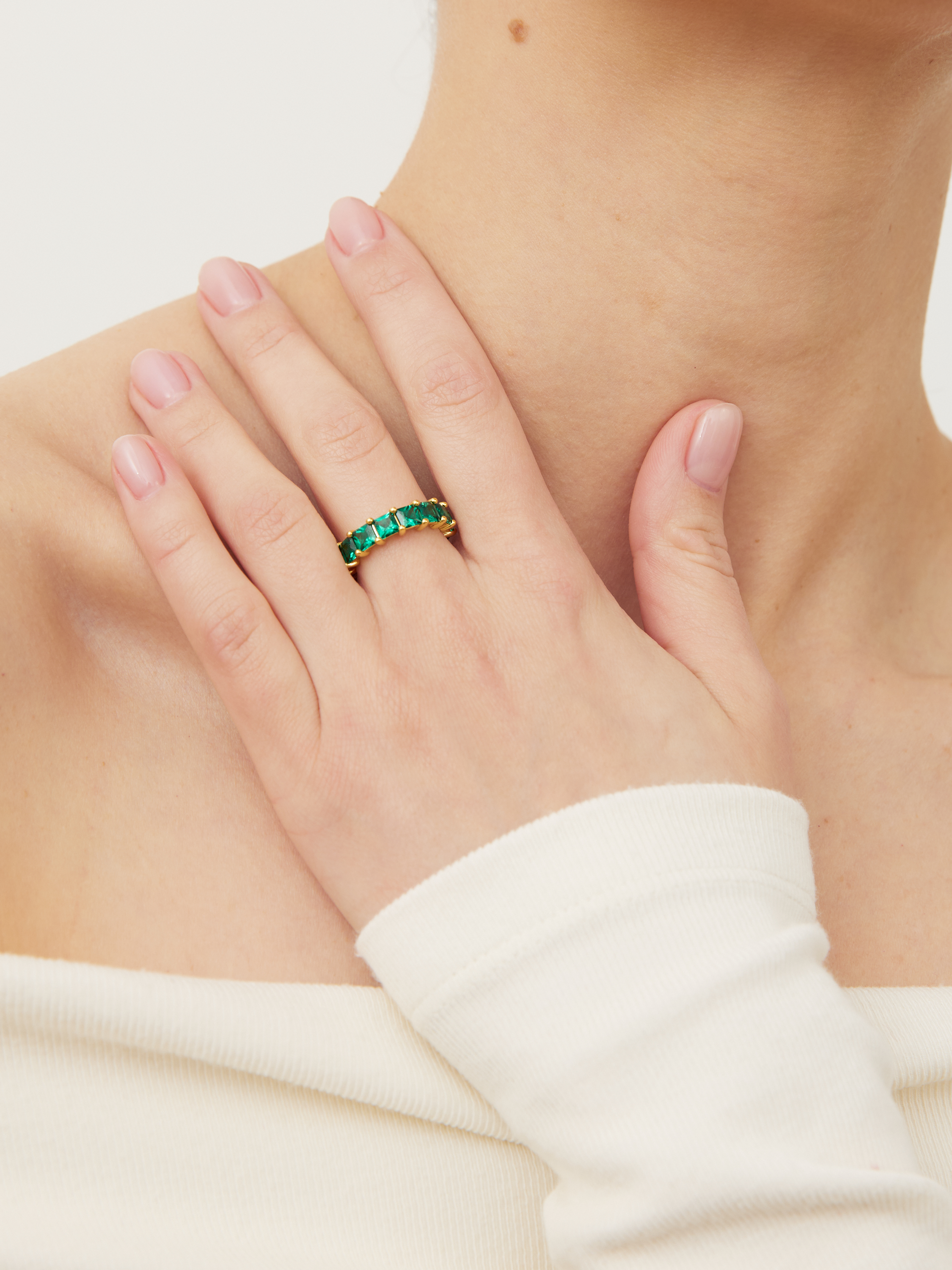 В этом украшении используется камень с квадратной огранкой, также называемой «принцесса».